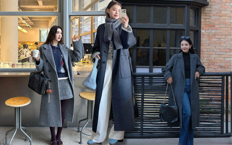 Bạn muốn trông thật "Hàn Quốc"? Hãy thử mix áo khoác xám dáng dài (oversize) với một chiếc quần ống rộng màu trắng kem hoặc be sáng. Sự tương phản nhẹ nhàng giữa xám và trắng tạo cảm giác sạch sẽ, thanh thoát và cực kỳ tôn da. Đừng quên phụ kiện nhé! Một chiếc khăn quàng cổ họa tiết, một chiếc túi xách màu xanh pastel hay đôi giày sneaker trắng sẽ là những nét chấm phá thú vị, biến set đồ đơn giản trở nên có gu hơn hẳn. Phong cách này đem lại sự thoải mái tuyệt đối, giúp bạn tự do di chuyển cả ngày dài mà vẫn giữ được vẻ ngoài sành điệu, "lười" một chút nhưng vẫn đẹp rạng ngời.