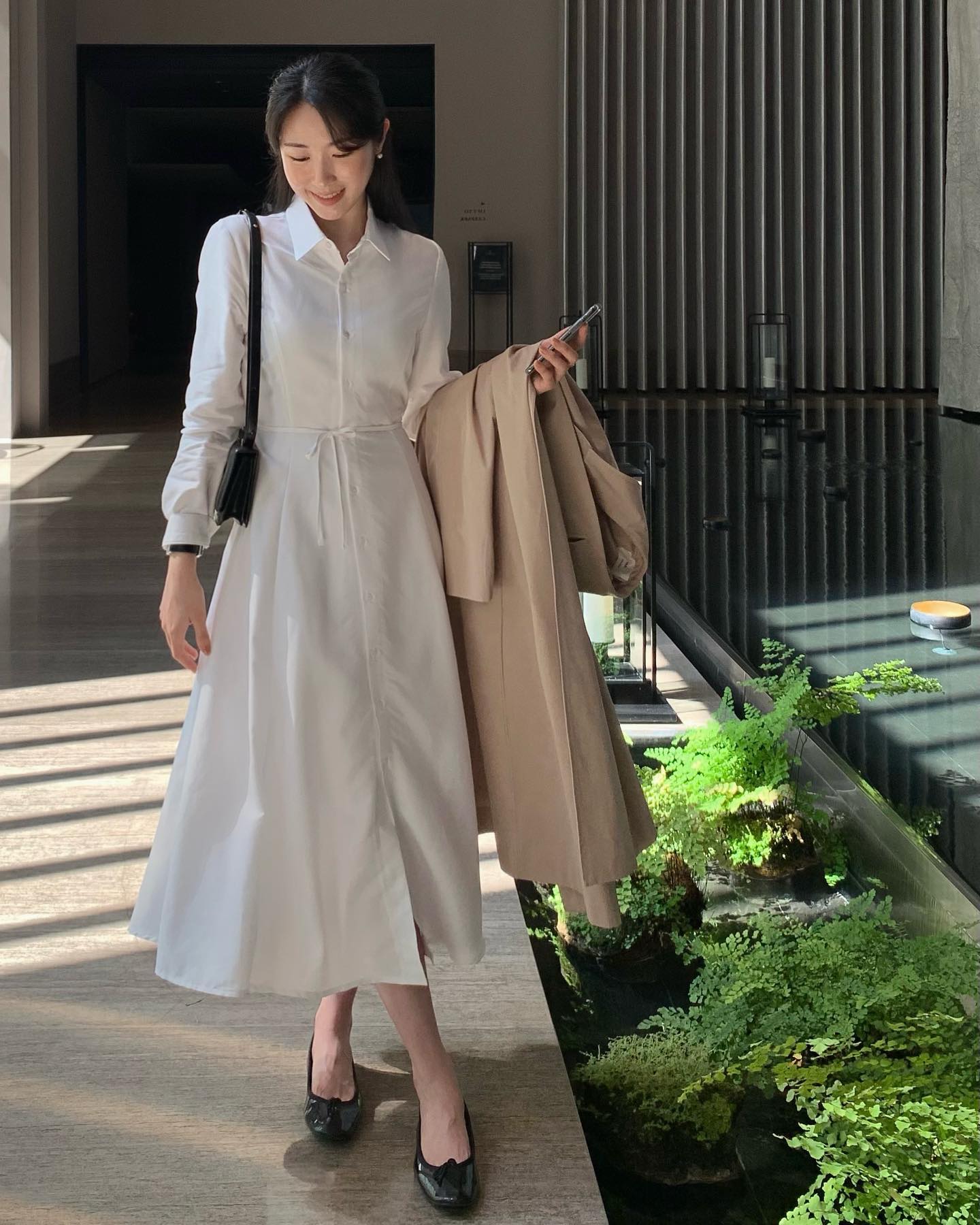 Một ưu điểm lớn của váy sơ mi là khả năng điều chỉnh phong cách chỉ bằng vài chi tiết nhỏ. Thêm một chiếc thắt lưng, bạn có thể biến chiếc váy suông thành dáng ôm tôn dáng.