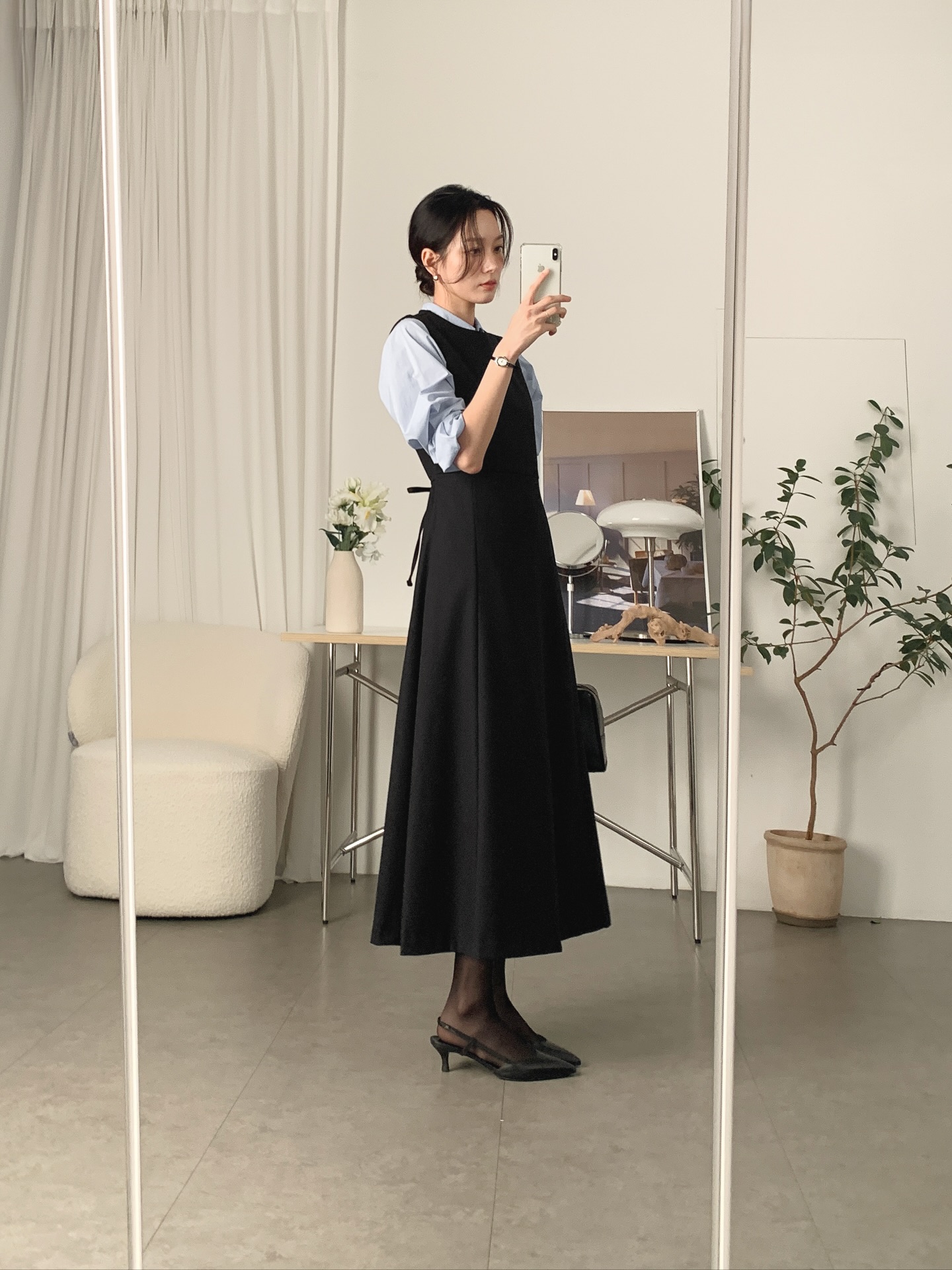 Váy tối màu nhấn eo đặc biệt phù hợp với những ngày cần sự nghiêm túc hoặc khi tham gia các cuộc họp quan trọng. Không quá nổi bật nhưng vẫn đủ sức tạo ấn tượng, kiểu váy này giúp bạn tự tin hơn trong mọi tình huống.