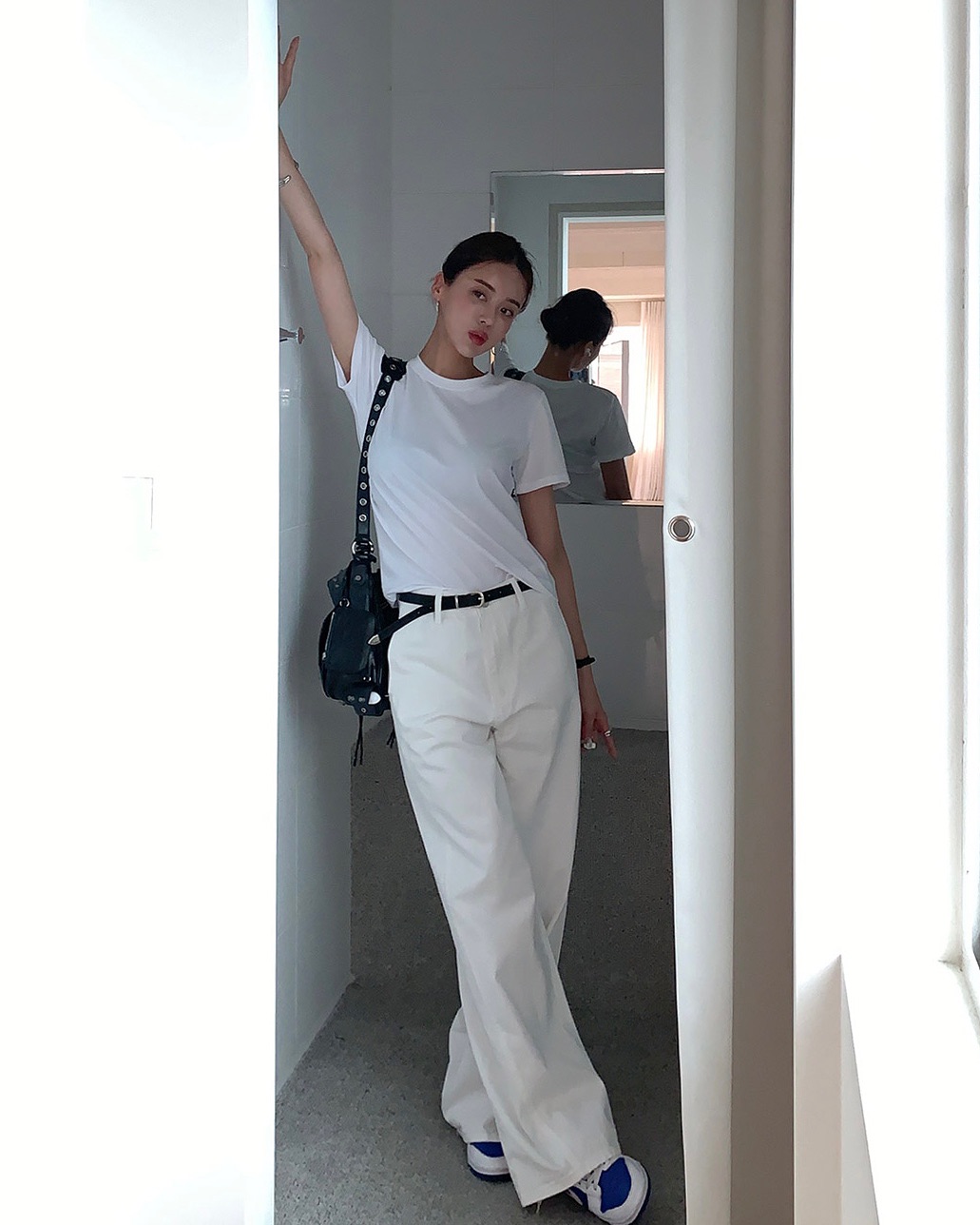 Quần trắng luôn mang lại cảm giác sáng sủa và mát mẻ, rất phù hợp cho mùa hè. Khi kết hợp với áo thun, bạn sẽ có một outfit tươi tắn và nhẹ nhàng. Để giữ sự cân bằng, hãy chọn áo thun có màu trung tính như xám, be hoặc đen.