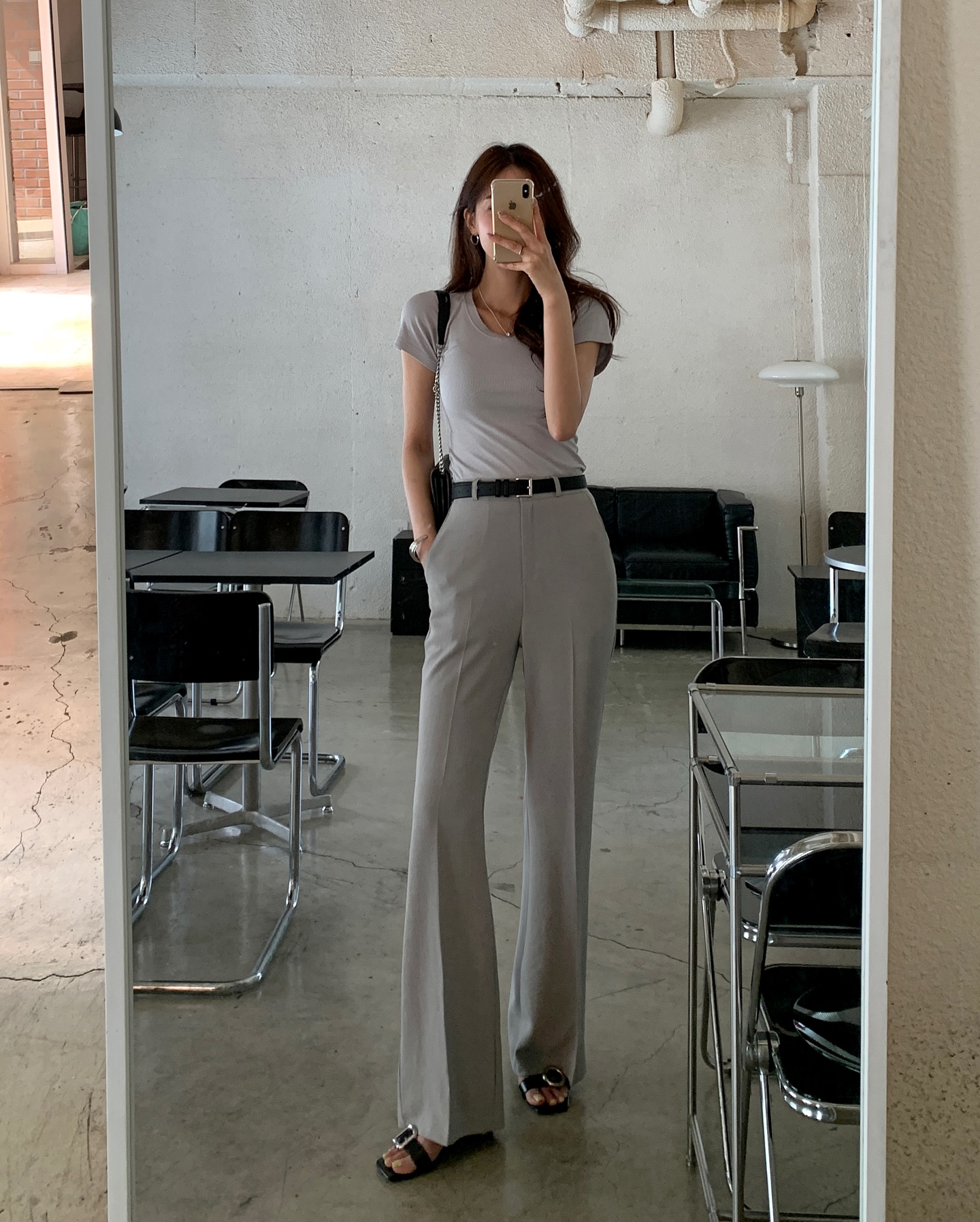 Nếu bạn yêu thích phong cách casual nhưng vẫn muốn giữ nét thanh lịch, công thức này là lựa chọn không thể bỏ qua. Áo thun trơn màu trắng, xám hoặc be khi kết hợp cùng quần ống suông sẽ tạo nên tổng thể đơn giản nhưng cực kỳ "có gu".