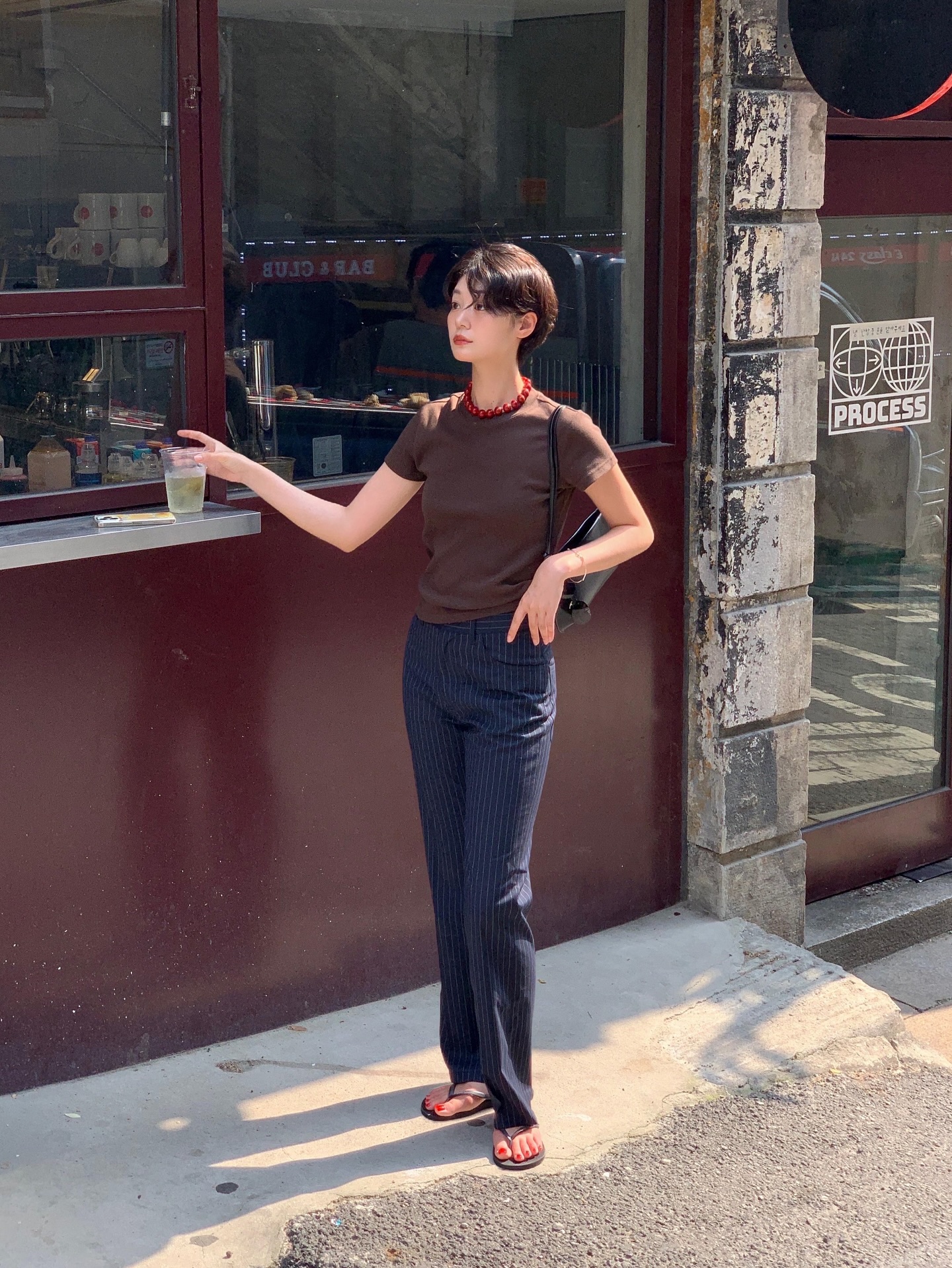Quần ống suông với form rộng rãi không chỉ giúp bạn thoải mái mà còn tạo hiệu ứng kéo dài đôi chân. Để tránh tổng thể bị đơn điệu, bạn có thể chọn chất liệu vải có độ rủ hoặc thêm một chiếc blazer khoác ngoài cùng tông màu. Đây là outfit lý tưởng cho những buổi cà phê, dạo phố hoặc chuyến du lịch mùa hè.