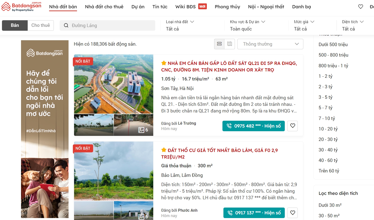 Hiện nay trên thị trường, Batdongsan.com.vn là website số 1 về thông tin, giao dịch mua bán nhà đất. Không những chiếm tỷ trọng lớn nhất về lượng người dùng tìm mua bán nhà đất mà đây là còn Website có lượng thông tin toàn diện, khách quan về thị trường bất động sản, tư vấn thiết kế xây dựng, nội thất và phong thủy.