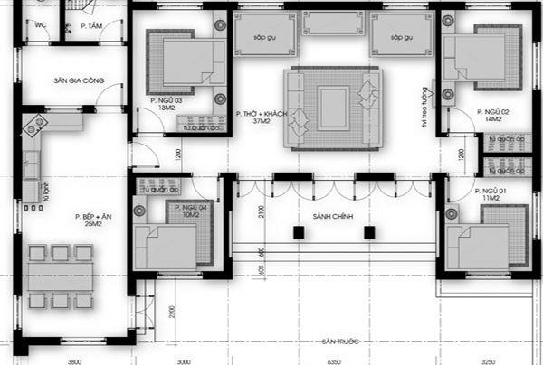 Bản vẽ phân chia kết cấu từng phòng để gia chủ hình dung rõ hơn.