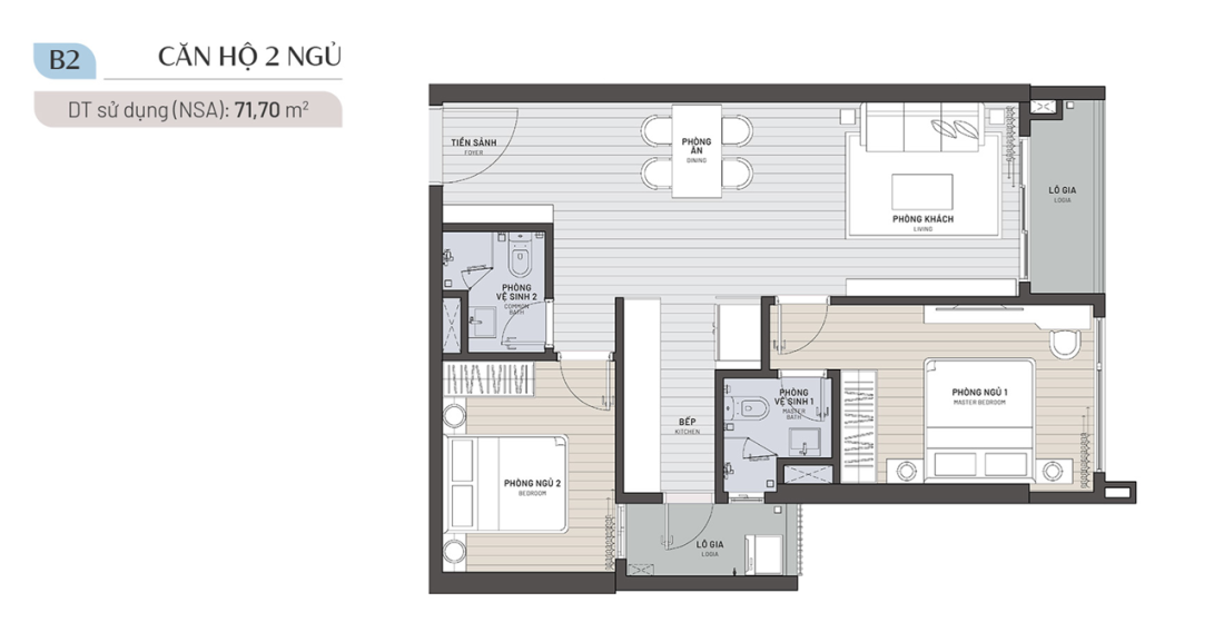 Diện tích: 71,7m2