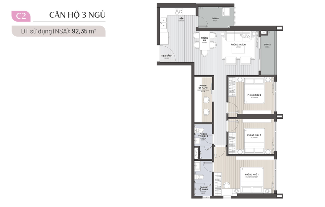 Diện tích: 92,35-104,01m2