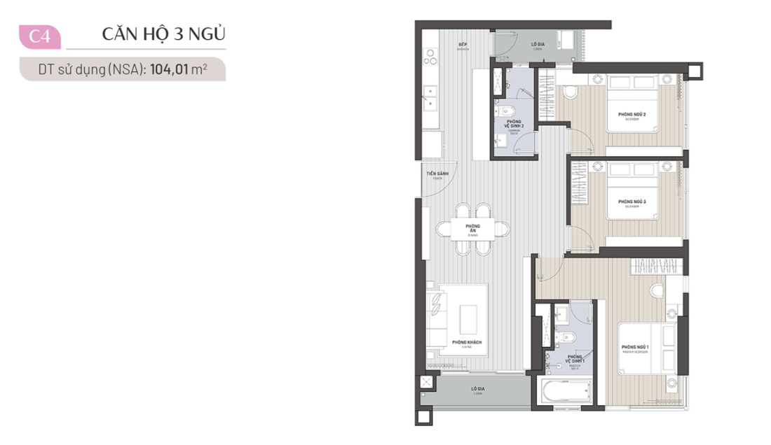 Căn hộ 3 phòng ngủ