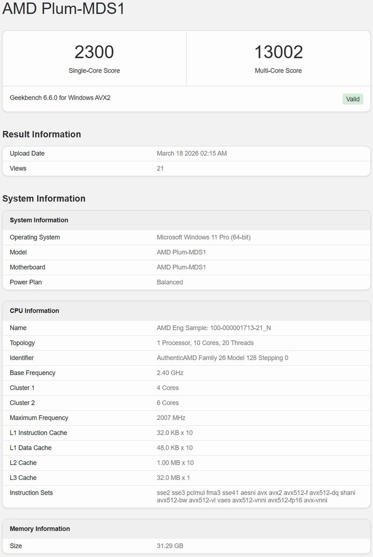 Một mẫu APU mới của AMD mang tên Medusa Point, sử dụng kiến trúc Zen 6, vừa tiếp tục xuất hiện trên cơ sở dữ liệu Geekbench với hiệu năng được ghi nhận cao hơn đáng kể so với các lần rò rỉ trước đó. Medusa Point được phát hiện trên nền tảng Plum-MDS1, sử dụng socket FP10 BGA mới và là nền tảng đánh giá dành cho các SoC AMD thế hệ tiếp theo trong dải công suất 28-45W.