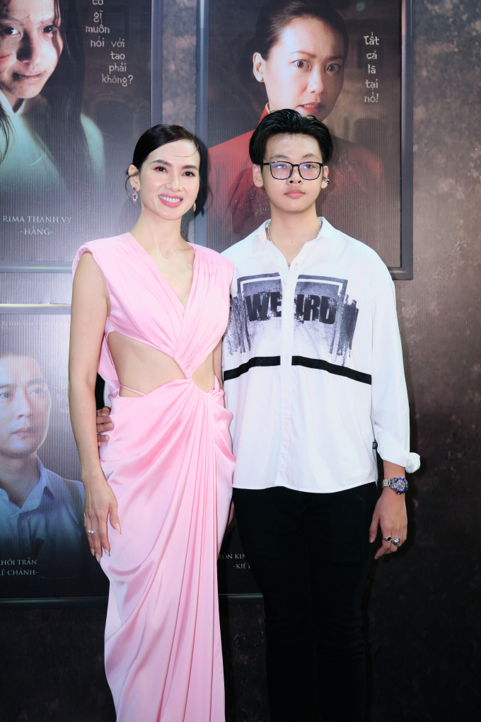 Mừng ngày tái xuất của mẹ Anh Thư với vai trò diễn viên, con trai Tiểu Long cũng xuất hiện lịch lãm trước ống kính. Thừa hưởng tố chất người mẫu từ mẹ, dù mới 15 tuổi nhưng cậu bé đã cao 1m82 vô cùng ấn tượng. Số lần xuất hiện tại họp báo showbiz không nhiều nhưng Tiểu Long luôn bộc lộ cho mọi người thấy sự điềm đạm, lễ phép. Đứng kế Anh Thư, cậu chàng cho thấy sự vững chãi, bản lĩnh để mẹ có thể dựa vào.