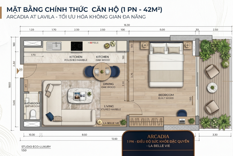 Layout căn hộ 1 phòng ngủ