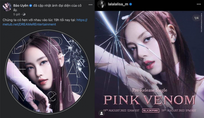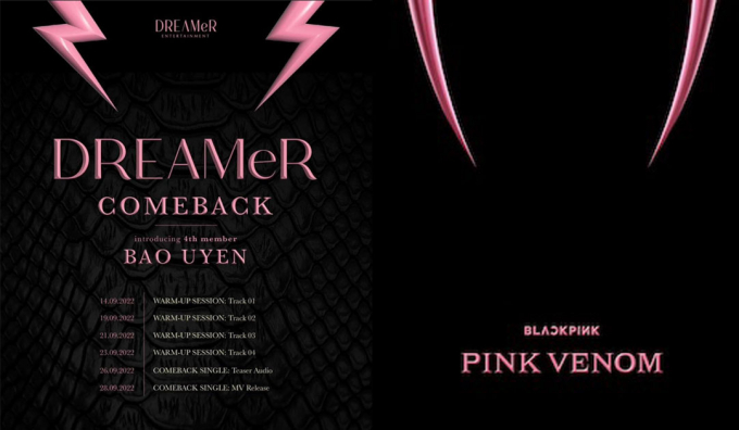 Timeline comeback của DREAMeR (bên trái) giống Pink Venom từ phông chữ cho đến ý tưởng.