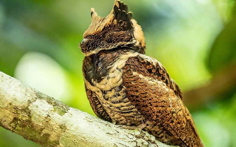Cú muỗi khổng lồ là loài lớn nhất trong họ cú muỗi được tìm thấy ở Thái Lan, nổi bật với những túm lông trông giống như tai và bộ lông màu nâu đốm, giúp chúng ngụy trang hiệu quả trên vỏ cây và thảm lá mục.