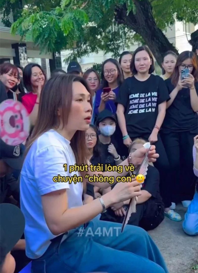 Khi được một người hâm mộ lớn tuổi hỏi “Có gia đình hay chưa?”, Mỹ Tâm hài hước trả lời: "Dạ con đó hả, con có gia đình chứ . Gia đình là ba mẹ, con cháu này kia đó cô. Chồng thì mình đâu có cần lấy chồng đâu mà chỉ cần có người yêu thương mình là được rồi. Ở chung là được, đâu có cần phải lấy nhau đúng không cô". Một khán giả khác cũng đặt câu hỏi "Sao con không có chồng?", nữ ca sĩ không ngần ngại chia sẻ: "Có chứ, con có chồng rồi đó chứ. Đối với con, khi con quen một người thì người đó là chồng con rồi, nên là con không nghĩ đến chuyện phải lấy nữa".