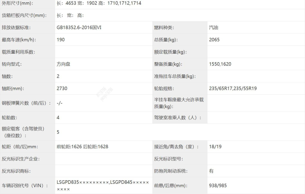 Về kích thước thân xe, chiều dài, chiều rộng và chiều cao của xe mới lần lượt là 4653/1902/1710, 1712 và 1714 mm, chiều dài cơ sở là 2730 mm, kích thước tổng thể đã tăng lên so với mẫu cũ. Về la-zăng, xe sẽ cung cấp 2 tùy chọn là mâm 17 inch đi kèm lốp 235/65 và lốp 235/55 sẽ được lắp cho bộ mâm 19 inch.