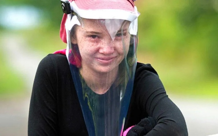 Điểm đặc biệt nhất trong "bộ giáp" sinh tồn của Alice chính là chiếc mặt nạ thợ hàn tự chế. Cha mẹ em đã dày công thiết kế một chiếc mũ đặc biệt có gắn tấm chắn lọc tia UV che kín toàn bộ khuôn mặt.