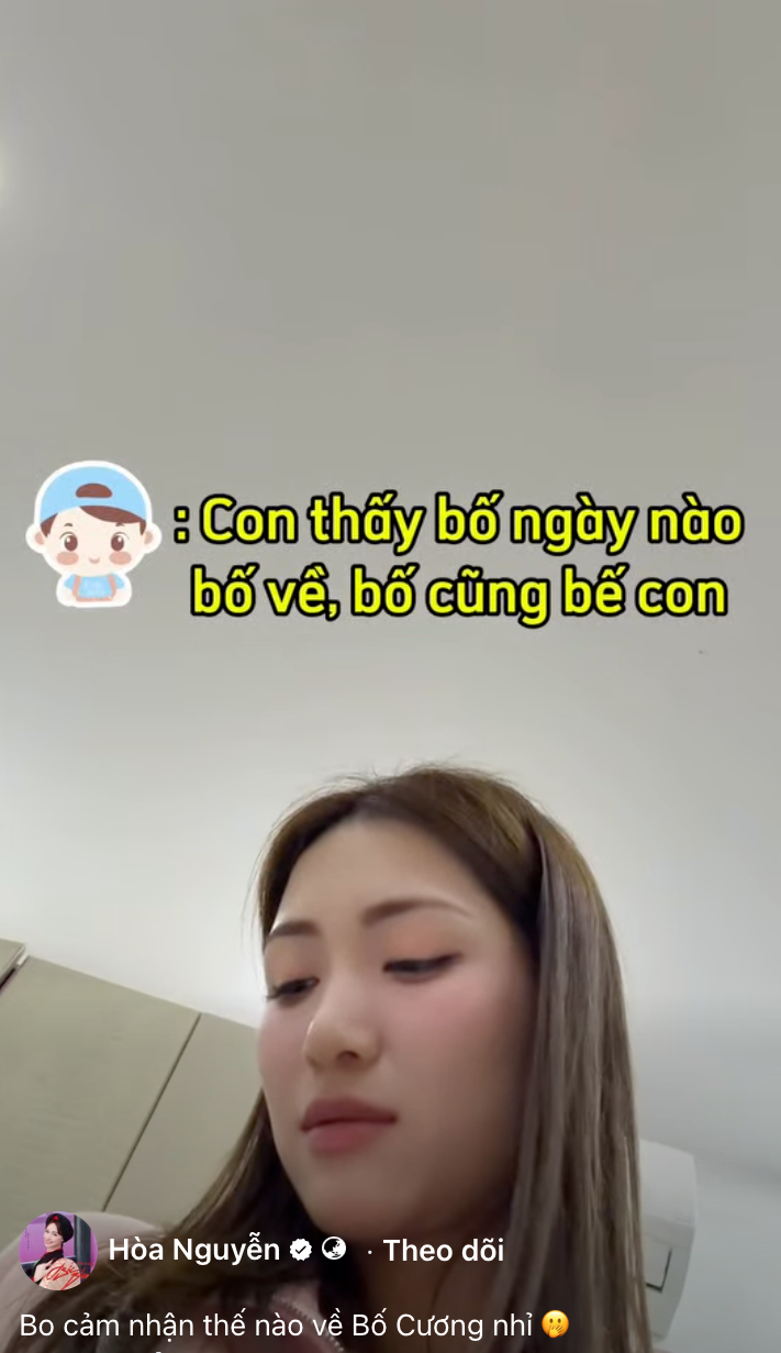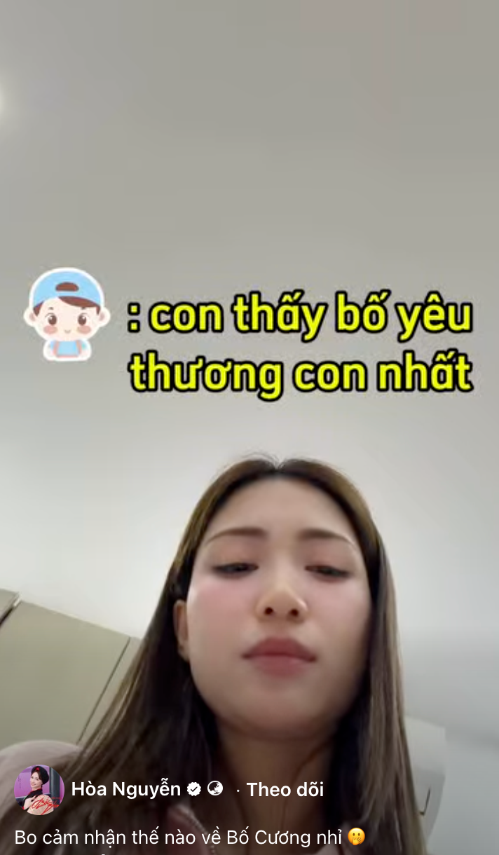 Trước đó, Hòa Minzy từng chia sẻ những đoạn hội thoại giữa cô và con trai khi nhắc về bố Cương. Dù còn nhỏ, bé Bo đã biết quan tâm, yêu thương và trân trọng hạnh phúc của mẹ. Cậu bé không chỉ hiểu chuyện mà còn thể hiện sự gắn bó với người bố đặc biệt trong cuộc đời mình.