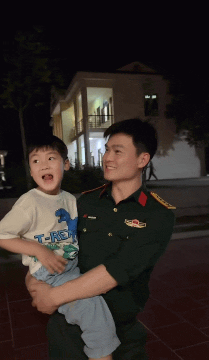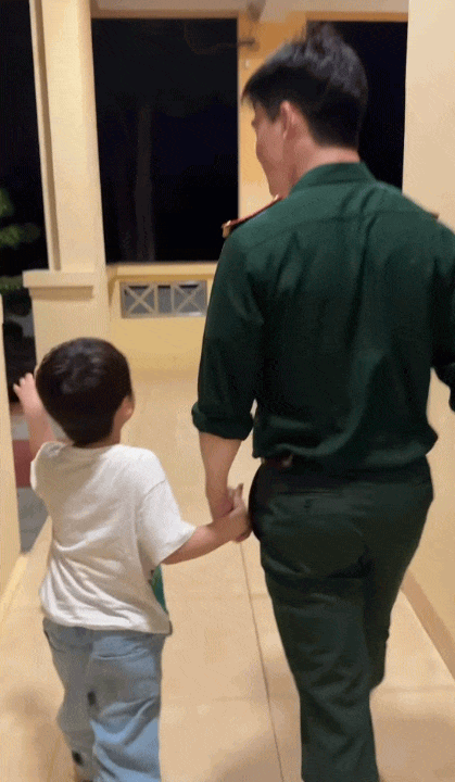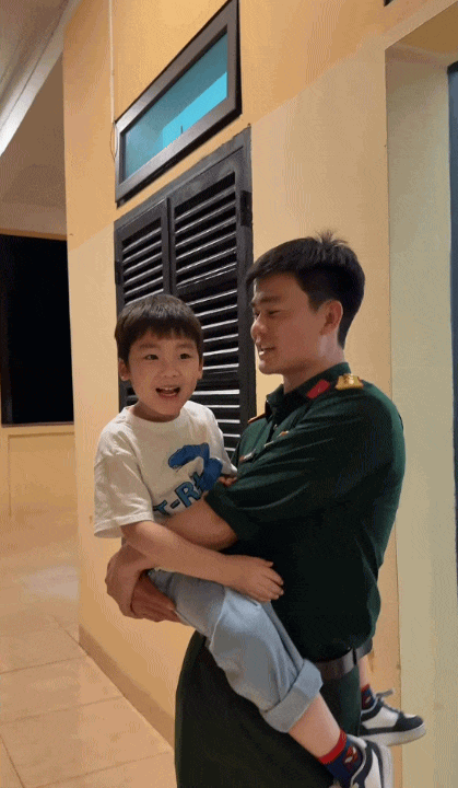 Trong video, bé Bo hào hứng chia sẻ: "Con được lên đơn vị thăm Bố Cương ạ! Con rất thích ở đơn vị Bố". Chỉ một câu nói ngây thơ nhưng đủ để thấy niềm vui và sự háo hức của cậu bé khi được gần gũi với người bố mà em hết mực yêu thương.