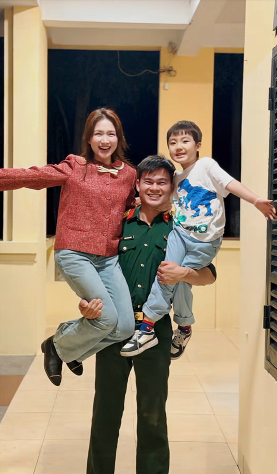 Trong chuyến thăm đơn vị lần này, nữ ca sĩ thoải mái nắm tay chồng, thể hiện tình cảm một cách tự nhiên. Đồng hành cùng mẹ, bé Bo trở thành tâm điểm với những biểu cảm đáng yêu và sự vui sướng hiện rõ trên khuôn mặt. Những khoảnh khắc bố Cương bế Bo, dắt tay cậu bé đi dạo hay khi Bo ôm chầm lấy cổ bố Cương đầy âu yếm đã khiến nhiều người không khỏi bồi hồi. Tình cảm giữa hai bố con tuy không cần lời nói hoa mỹ nhưng lại vô cùng chân thật và sâu sắc.