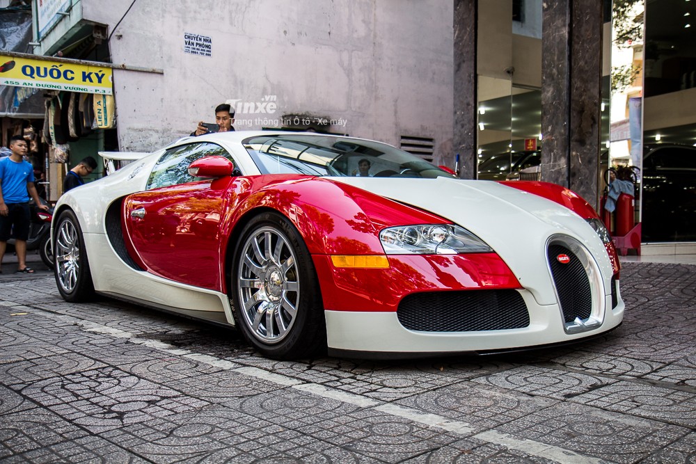 Bugatti Veyron chính là siêu xe hypercar đầu tiên về Việt Nam. Nguyên bản xe có màu sơn trắng đỏ