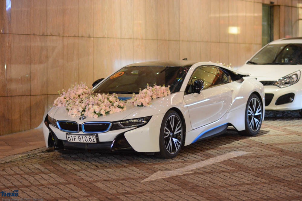 Trong đó, phải kể đến chiếc BMW i8 màu trắng, đây cũng chính là xe rước dâu của Diệp Lâm Anh và Nghiêm Đức, mẫu xe thể thao này sở hữu động cơ 3 xy lanh, dung tích 1.5 lít, TwinPower Turbo và một động cơ điện sản sinh công suất tối đa 131 mã lực và mô-men xoắn cực đại 250 Nm. Khi kết hợp hai động cơ xăng và điện này lại với nhau, chiếc xe thể thao BMW i8 này có công suất tổng cộng là 362 mã lực và mô-men xoắn cực đại 570 Nm. Hệ truyền động hybrid trên BMW i8 sẽ đi kèm với hộp số tự động 6 cấp.