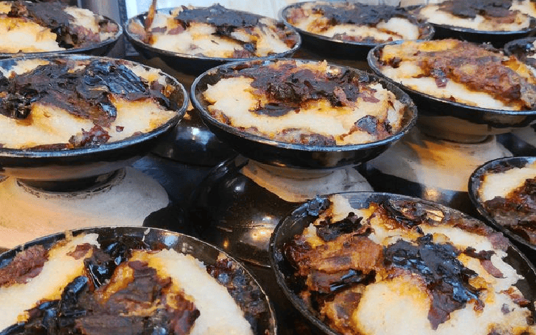 Bánh Tăng (Zeng-gao, Chính Cao) là món ăn sáng kinh điển gắn liền với ký ức tuổi thơ của biết bao người con vùng Quan Trung. Trong chiếc nồi đất nung (gọi là Tăng) khổng lồ, những lớp gạo nếp trắng ngần được xếp xen kẽ với táo đỏ và đậu đỏ, đồ chín suốt nhiều giờ đồng hồ. Khi múc ra bát, bánh dẻo quánh, kéo sợi như phô mai, màu đỏ thẫm của táo nhuộm hồng cả hạt gạo. Vị ngọt của bánh đến hoàn toàn từ táo đỏ, tự nhiên và dễ chịu. Một miếng bánh dẻo thơm, uống cùng cốc sữa đậu nành nóng hổi, là đủ năng lượng cho một ngày dài khám phá.