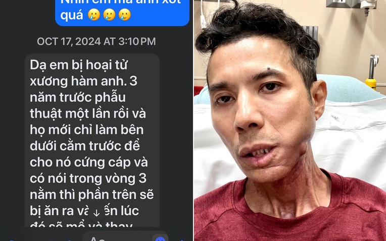 Khánh Hoàng chia sẻ tin nhắn với Kasim Hoàng Vũ về căn bệnh hoại tử xương hàm.