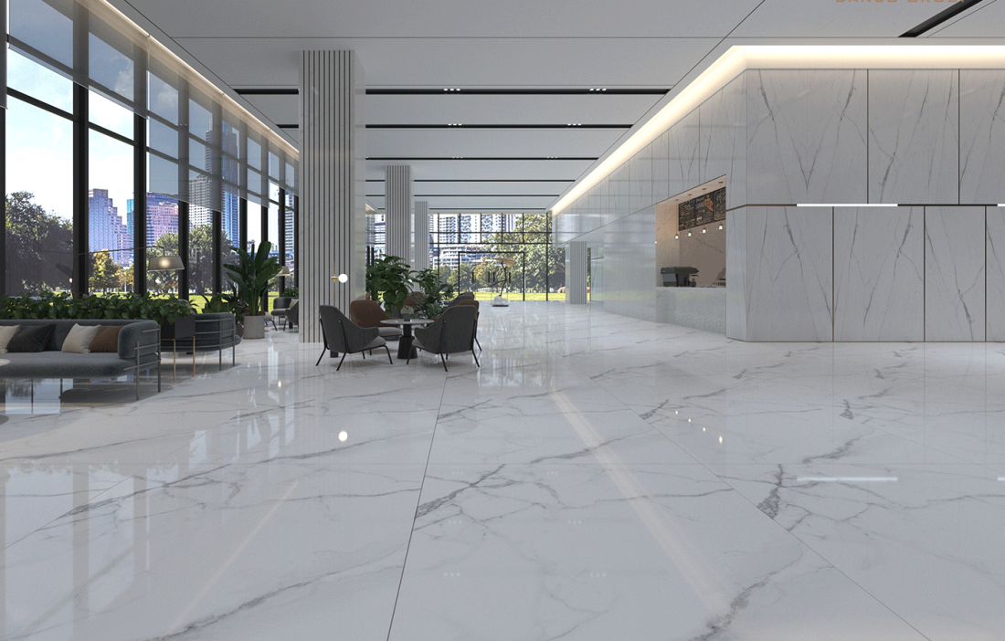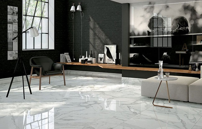Sự kết hợp giữa gạch kích thước lớn và vẻ đẹp đá marble giúp cho không gian sống tăng vẻ đẹp hiện đại