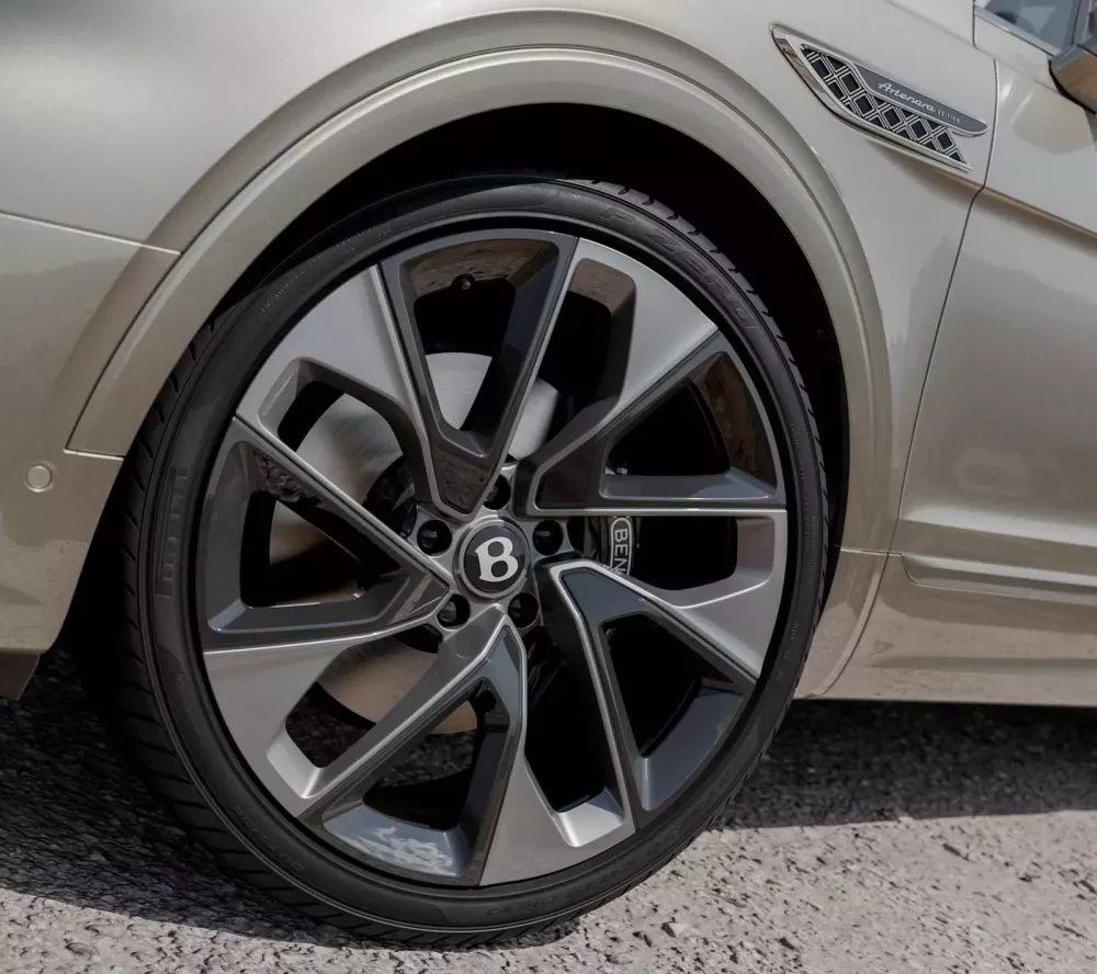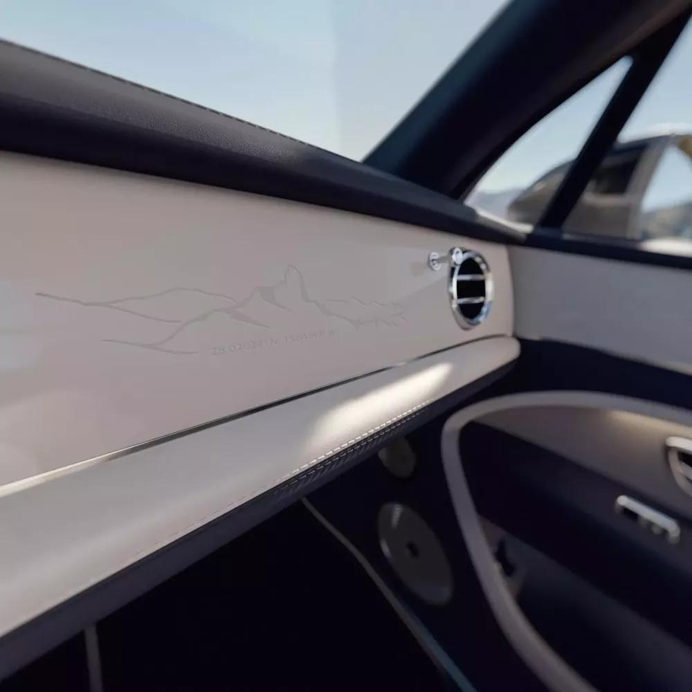 Ngoài ra còn có các chi tiết mạ crôm sáng bóng phía dưới cùng màu thân xe với tám sắc thái khác nhau, và cũng có tám màu sắc, tất cả đều hài hòa với sự kết hợp ba màu bên trong nội thất, một tùy chọn trước đây chỉ có trên mẫu Mulliner EWB. Ở phía trước, địa hình núi non hiểm trở xung quanh làng Artenara trên đảo Gran Canaria được khắc họa cùng với kinh độ và vĩ độ chính xác của Roque Bentayga.