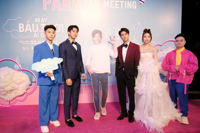 Ê kíp sản xuất "Là mây trên bầu trời của ai đó"Nam diễn viên Pak Papungkorn (thứ 2 từ trái sang) cũng sang Việt Nam ủng hộ phimAugust Vachiravit và Ngọc Lan Vy
