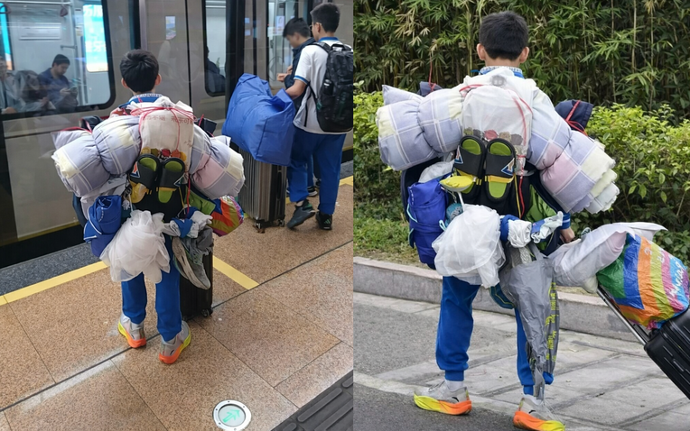 Những ngày gần đây, một bức ảnh chụp từ phía sau của một nam sinh trung học bất ngờ lan truyền mạnh mẽ trên mạng xã hội Trung Quốc. Trong ảnh, cậu bé mặc đồng phục học sinh, dáng người nhỏ nhắn, một tay đẩy vali, trên lưng và hai bên người là đủ loại hành lý lớn nhỏ được buộc gọn gàng, đang chờ tàu điện ngầm. Kỹ năng "đóng gói thần sầu" này khiến nhiều cư dân mạng, đặc biệt là các bậc phụ huynh, không khỏi trầm trồ: "Chừng ấy đồ mà buộc gọn bằng dây đeo lên người, ngay cả người lớn cũng chưa chắc làm được".