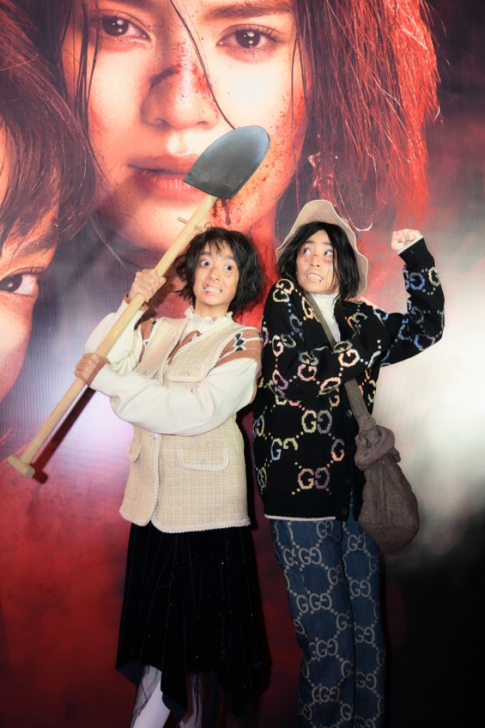 Trên thảm đỏ tối nay, Ninh Dương Lan Ngọc - Kaity Nguyễn lại thêm một lần khiến mọi người hết hồn với tạo hình có 1-0-2. Không váy áo lộng lẫy như những lần khác xuất hiện trước công chúng, Lan Ngọc và Kaity Nguyễn bước lên thảm đỏ trong bộ dạng tồi tàn, nghèo khổ, lấm lem. Được biết, đây cũng chính là tạo hình của cả 2 nữ diễn viên trong Cô gái từ quá khứ.