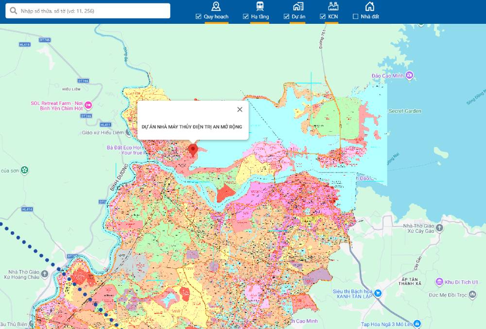 >>Bản đồ quy hoạch vị trí dự án nhà máy thủy điện Trị An mở rộng