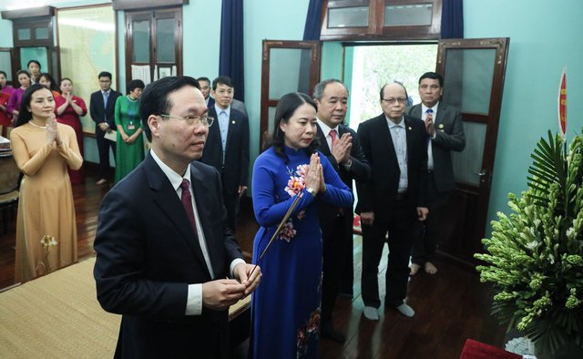 Chiều cùng ngày, Chủ tịch nước Võ Văn Thưởng đã thành kính dâng hương tưởng nhớ Chủ tịch Hồ Chí Minh tại Nhà 67 trong Khu Di tích Chủ tịch Hồ Chí Minh ở Phủ Chủ tịch./.