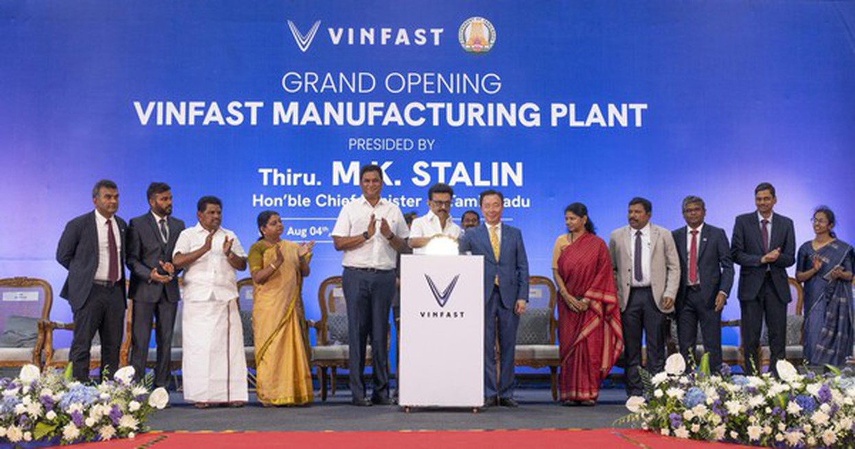 Ngày 4/8, VinFast chính thức khánh thành nhà máy lắp ráp ô tô điện tại Khu công nghiệp SIPCOT, thành phố Thoothukudi, bang Tamil Nadu, Ấn Độ. Đây là nhà máy đầu tiên của VinFast ngoài lãnh thổ Việt Nam đi vào hoạt động, được xây dựng trên diện tích 160 ha, trang bị dây chuyền sản xuất hiện đại, tự động hóa cao với đầy đủ các phân xưởng từ hàn, sơn, lắp ráp đến trung tâm kiểm định chất lượng và kho logistics.