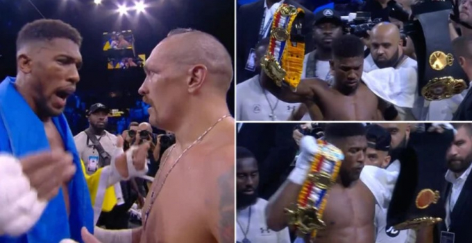Joshua ném đai vô địch của Oleksandr xuống sàn.