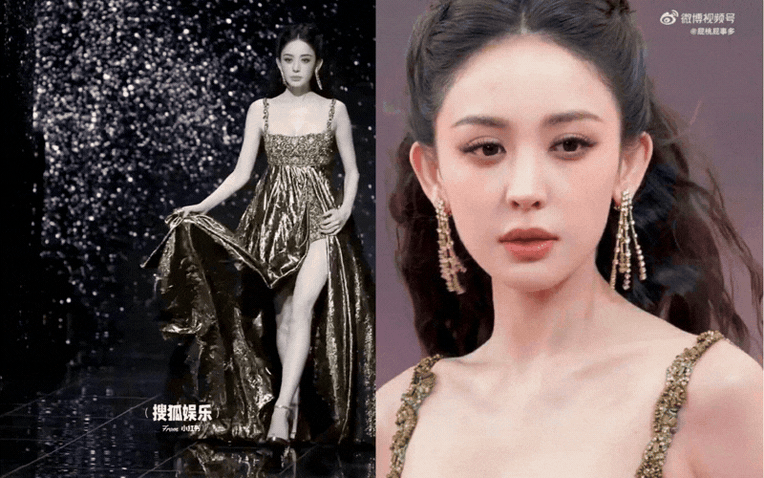 Thế nhưng tâm điểm sự chú ý lại đổ dồn vào vóc dáng có da có thịt đầy sức sống của Cổ Lực Na Trát. Không còn theo đuổi trào lưu mình hạc xương mai như trước, người đẹp giờ đây có màn lột xác ngoạn mục với body đầy đặn, vòng nào ra vòng đấy cực quyến rũ. Chiếc váy dạ hội được thiết kế sequin vàng rực rỡ với phần thân trên ôm sát cùng chi tiết xẻ tà cao vút không chỉ giúp nữ diễn viên khoe trọn đôi chân dài cực phẩm mà còn khoe trọn vùng xương quai xanh mềm mại cũng như vòng 1 căng tràn vốn có của cô.