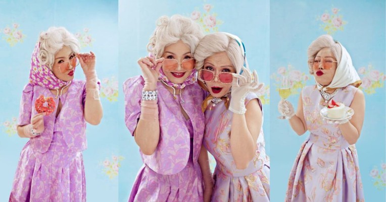 Trong khung cảnh ấy, Việt Hương và Hồng Đào hóa thân thành hai “quý bà” hiện đại, thanh lịch, sang trọng nhưng không kém phần dí dỏm khi hai nghệ sĩ gạo cội diện váy hoa pastel ánh kim được thiết kế riêng, tôn dáng và phù hợp với phong cách cổ điển mà vẫn giữ được nét trẻ trung. Các phụ kiện như găng tay ren, chuỗi ngọc trai, kính râm màu hồng và khăn lụa góp phần hoàn thiện hình ảnh của hai “bà thơ” vừa cổ điển, vừa thời thượng.