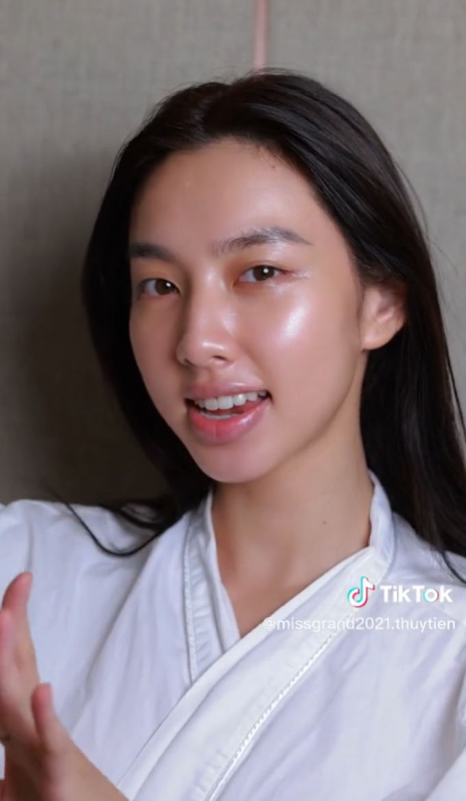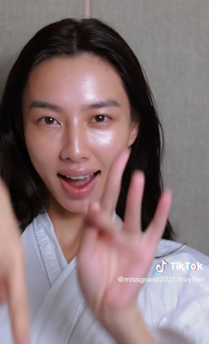 Hoa hậu Thùy Tiên tự tin khoe mặt mộc "đu trend" biến hình trên Tiktok.
