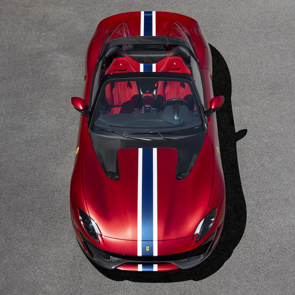 Ai cũng biết, Ferrari 812 GTS là một chiếc siêu xe mui trần có phần mái nhà chỉ mất 14 giây là đóng hoặc mở mui rất tiện lợi nhưng để trở thành 1 chiếc Ferrari one-off, chủ xe và bộ phận Ferrari Special Projects đã thống nhất cắt bỏ đi phần mui xếp cứng, điều này có thể khiến chủ xe gặp khó khăn khi lái xe ra đường mà thời tiết bất chợt đổ mưa hay gió mạnh có thể khiến các vật thể lạ và bụi bẩn bám chặt khoang lái.