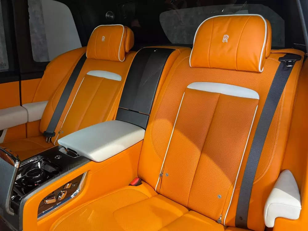 Nội thất xe Rolls-Royce Cullinan có 2 lựa chọn chính là 4 chỗ và 5 chỗ. Thông thường, các đại gia chọn cấu hình 4 chỗ ngồi trên Rolls-Royce Cullinan là Individual Seat. Điều này đồng nghĩa ở hàng ghế sau sẽ chỉ có 2 ghế ngồi kiểu độc lập và thương gia được tách riêng bằng cụm điều khiển trung tâm cỡ lớn ở giữa, tích hợp tủ chứa chai đựng rượu, ly whisky, ly cao uống champagne và ngăn lạnh.