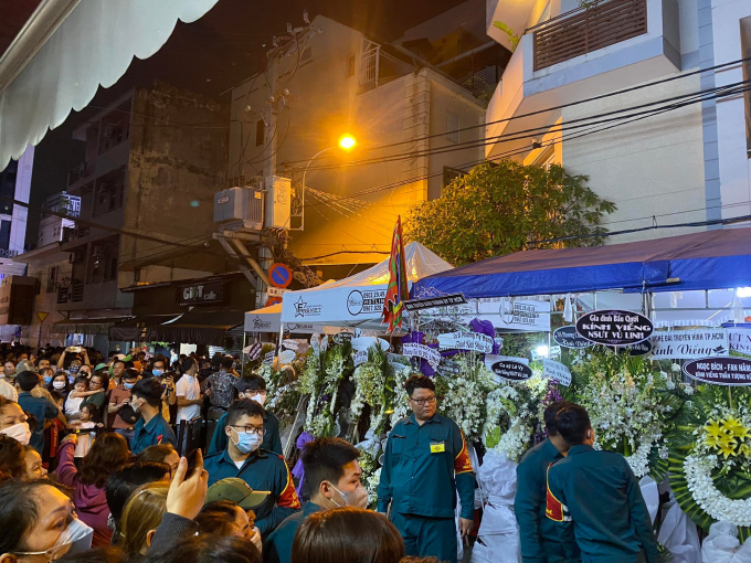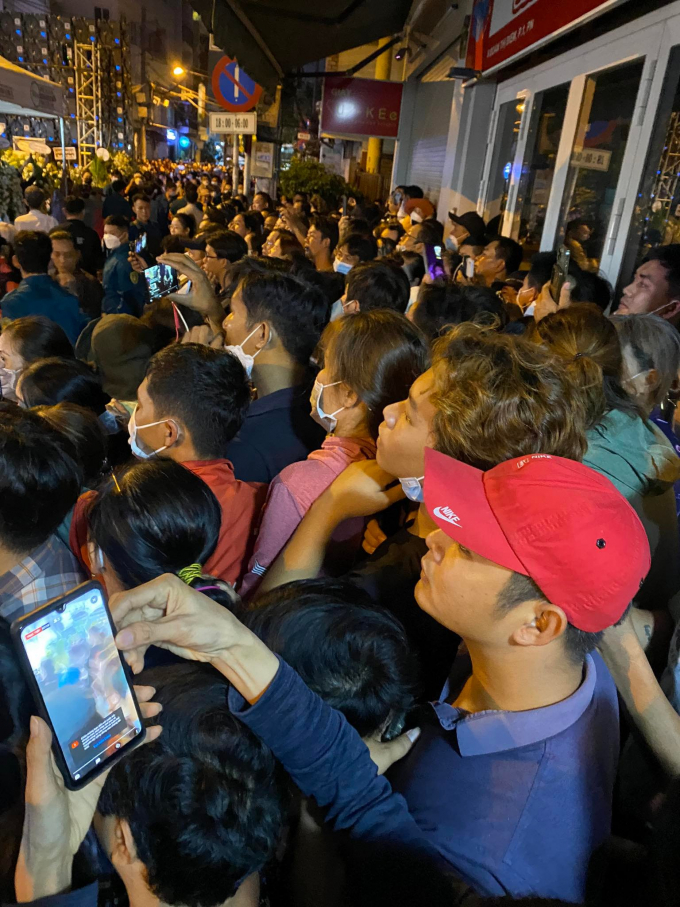 Bên cạnh bộ phận khán giả yêu mến muốn đến viếng nghệ sĩ Vũ Linh, nhiều streamer cũng tụ tập đông ở khu vực nhà cố nghệ sĩ để quay video. Mỗi người tay cầm điện thoại, chăm chú hướng máy quay vào phía trong khiến khung cảnh tang lễ đôi khi thiếu kiểm soát và mất trật tự.