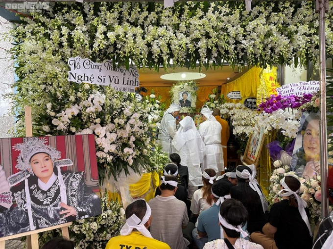 Tang lễ NSƯT Vũ Linh diễn ra tại nhà riêng ở quận Phú Nhuận, TPHCM, nam nghệ sĩ từ trần sau thời gian dài chống chọi với căn bệnh ung thư trực tràng. Chiều 8/3, gia đình của cố nghệ sĩ đã tổ chức đêm diễn Tiễn biệt NSƯT Vũ Linh, thu hút sự tham gia đông đảo của người hâm mộ, khán giả trung thành của ông.
