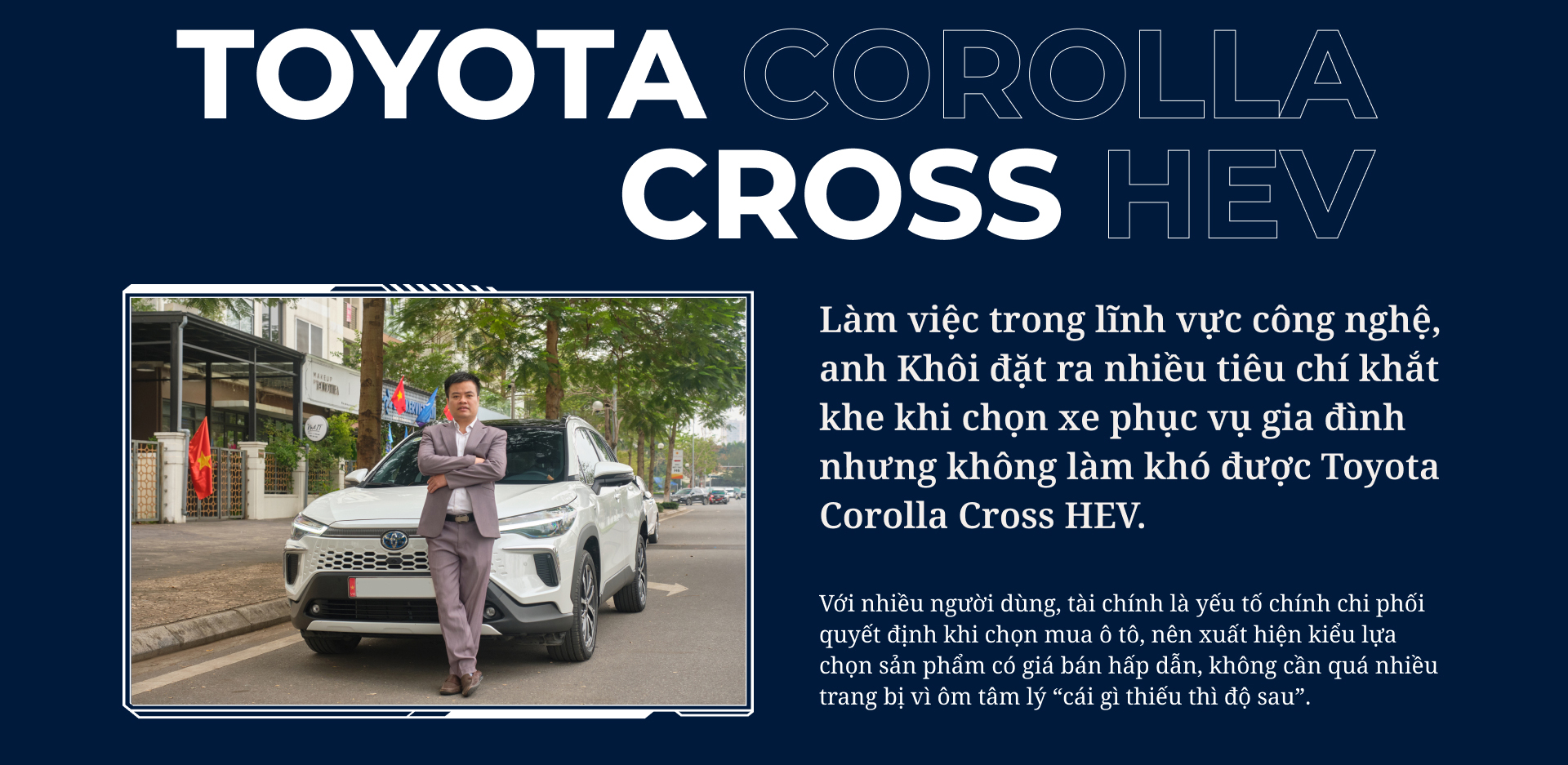 Làm việc trong lĩnh vực công nghệ, anh Khôi đặt ra nhiều tiêu chí khắt khe khi chọn xe phục vụ gia đình nhưng không làm khó được Toyota Corolla Cross HEV.