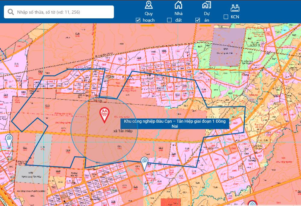 Bản đồ quy hoạch vị trí dự án Khu công nghiệp Bàu Cạn - Tân Hiệp (giai đoạn 1)