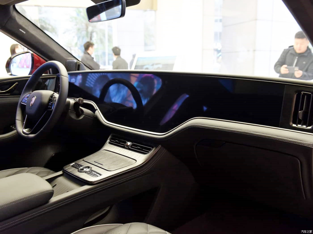 Mở cửa bước vào trong khoang lái, bạn dễ tìm thấy sự hiện đại và sành điệu của Hengchi 5 qua 3 màn hình và cửa sổ trời lớn. Trong đó, xe có hai màn hình 10,25 inch cho người lái và hành khách và màn hình giải trí có kích thước 14,6 inch. Cả 3 màn hình này có kết nối 5G và hoạt động trong hệ sinh thái Baidu.