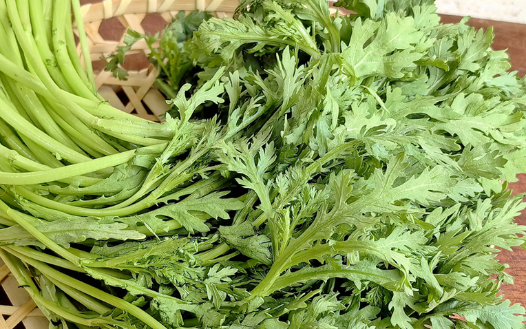 Cải cúc có mùi thơm đặc trưng, loại mùi này khiến sâu bọ tránh xa nên không cần dùng nhiều thuốc. Tháng 10 là lúc rau cải cúc non mướt, giòn ngon nhất. Rau chứa nhiều vitamin và chất xơ, giúp hỗ trợ tiêu hóa, ăn sống hay nấu chín đều rất hợp.