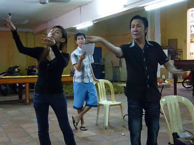 NSƯT Vũ Linh hướng dẫn nhiệt tình nghệ sĩ Bình Tinh diễn vở "Công chúa Đồ Lư".