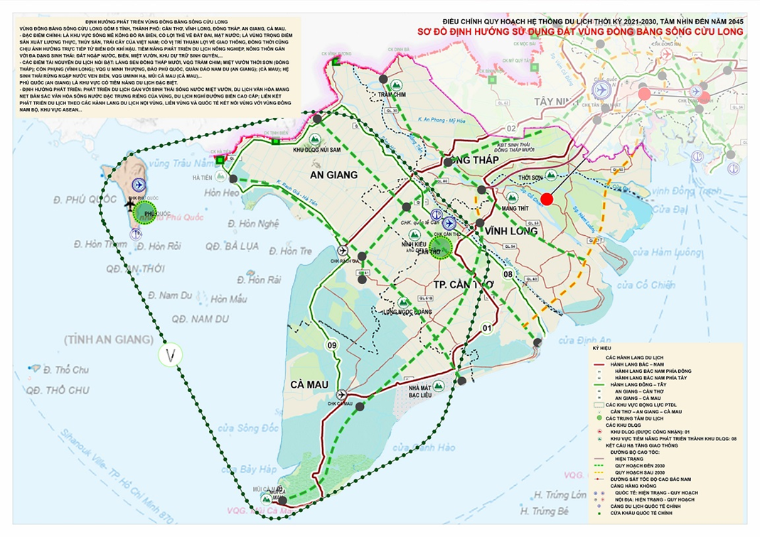 - Khu vực động lực phát triển du lịch Cần Thơ - An Giang - Cà Mau Thúc đẩy phát triển du lịch toàn bộ vùng Đồng bằng sông Cửu Long, gắn kết phát triển du lịch với hành lang kinh tế ven biển thuộc hành lang kinh tế phía Nam.
