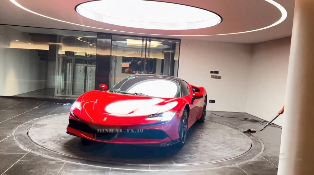 Việc sử dụng các bàn xoay trong không gian chập hẹp của bãi đỗ xe hay garage đã không còn xa lạ trên thế giới, điều này đã mang đến giải pháp rất thiết thực và hiệu quả cho ông Đức Huy để làm cho garage xe của mình, chỉ cần đưa chiếc Ferrari SF90 Stradale vào khu vực bàn xoay, việc còn lại đã có hệ thống làm.