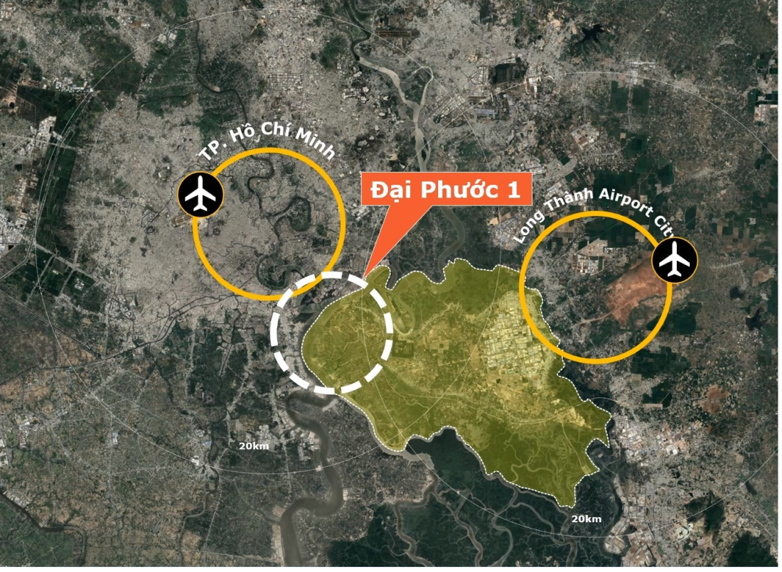 Với quy mô khoảng 3.131,38 ha, phân khu này nằm ở vị trí chiến lược đặc biệt: phía Tây đô thị mới Nhơn Trạch, giáp sông Đồng Nai và TP.HCM, trở thành “cầu nối” quan trọng giữa Sân bay Tân Sơn Nhất (sân bay lớn nhất Việt Nam hiện tại) và Sân bay Quốc tế Long Thành (sân bay lớn nhất tương lai).
